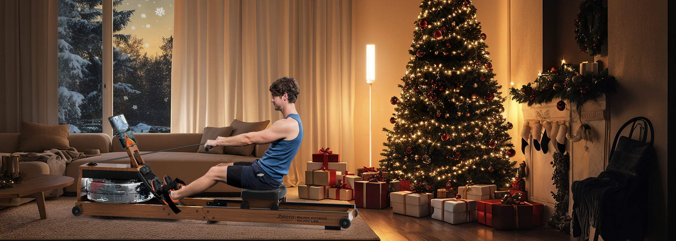 JOROTO MR380C Wasser-Rudergerät aus Hartholz – Rudergerät fürs Home-Gym aus FSC-zertifiziertem Holz