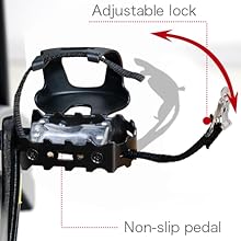 - Stahlpedale mit Zehenkäfig und verstellbaren Riemen passen für verschiedene Schuhgrößen.